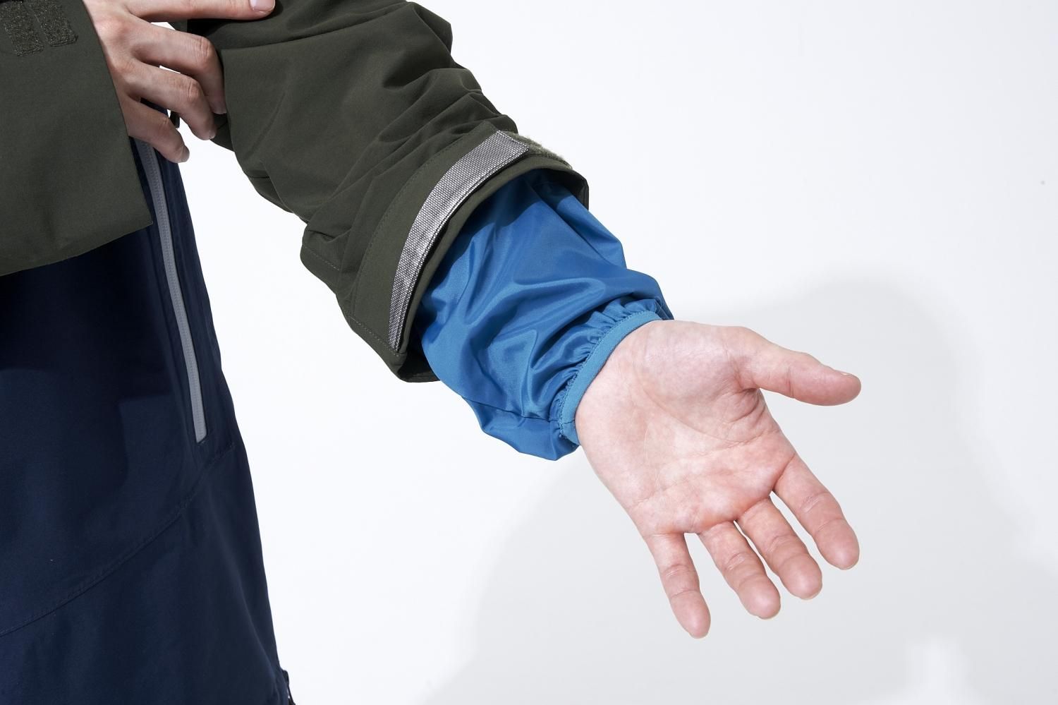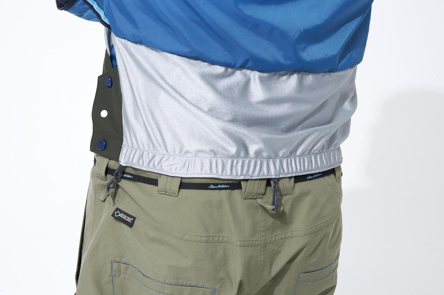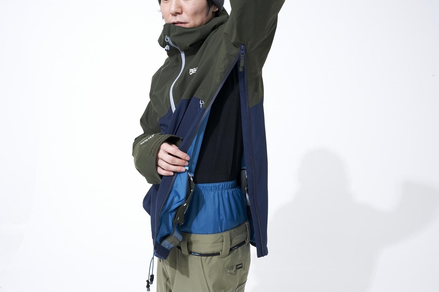 YKK Aqua Guard?ジッパーを採用。サイドジッパーが、腕の部分まで延長されました。フラップがないので、動きやすく、水分の侵入もありません。着心地も向上。