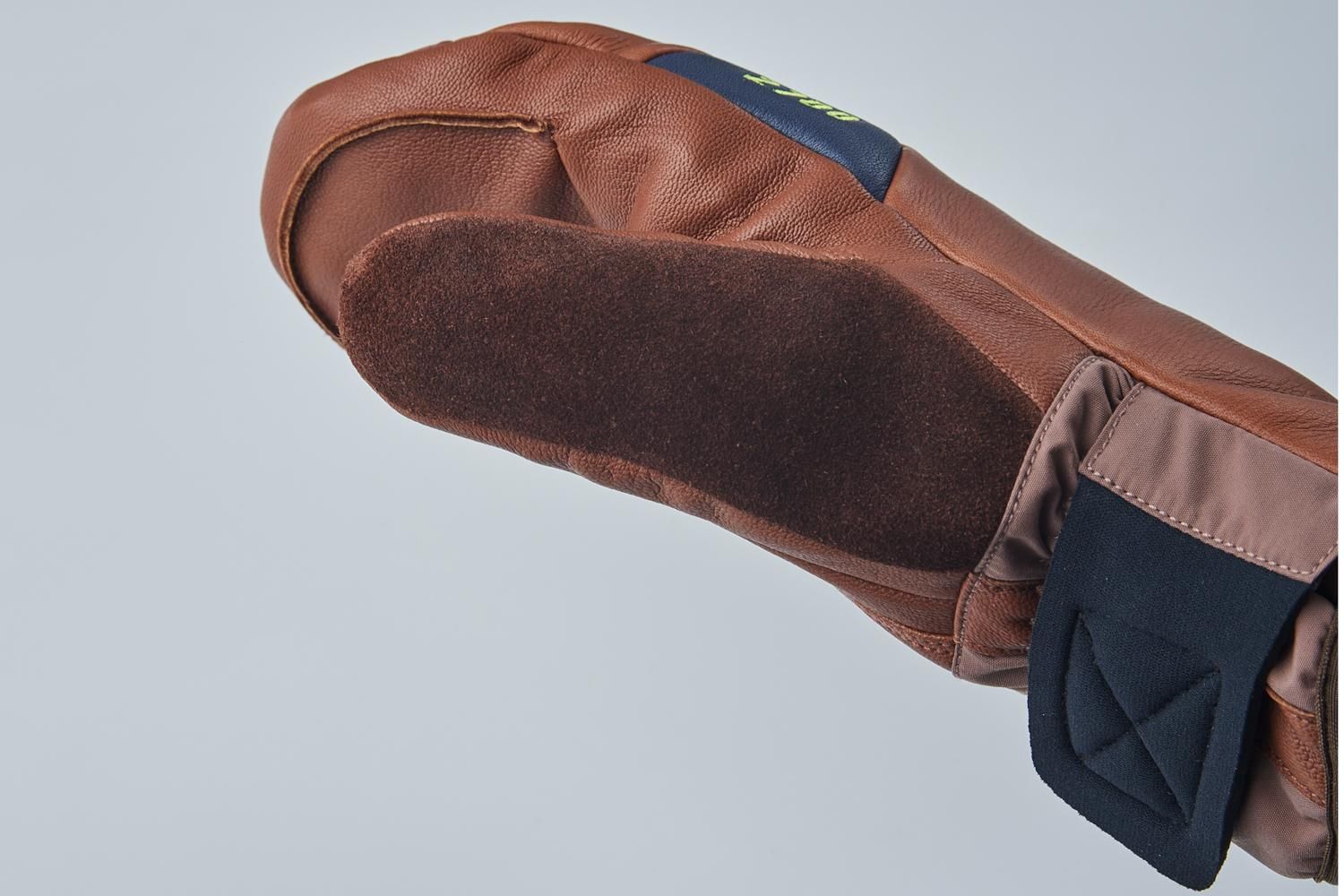 ・ 右手の親指には本革製の鼻拭きを装備。